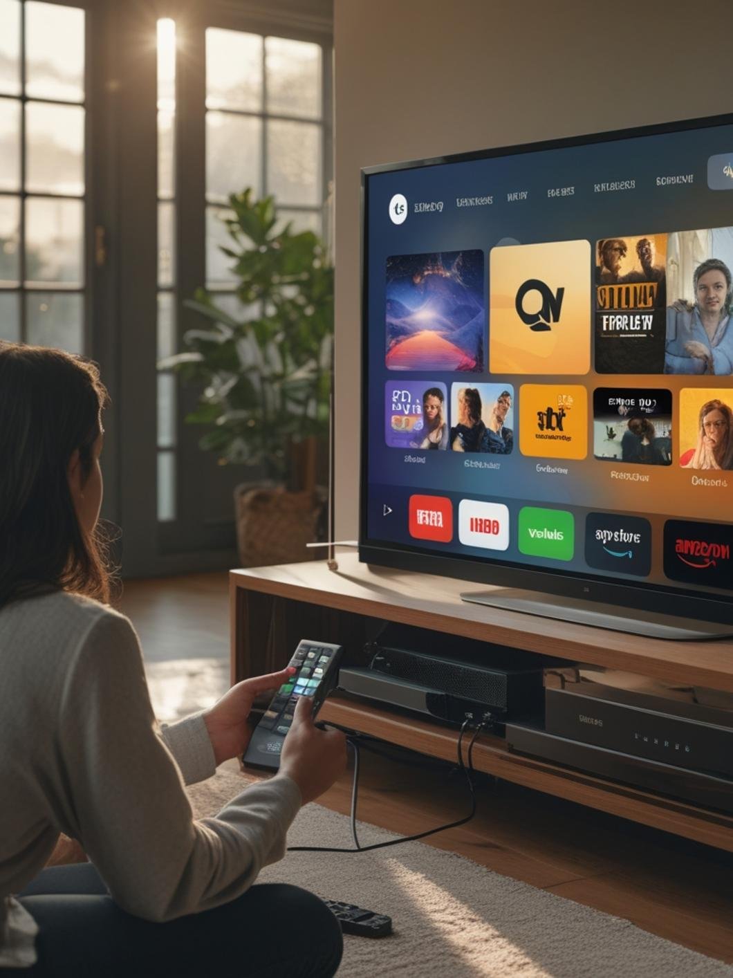 * Fjärrkontroll/Tangentbord: En bekväm fjärrkontroll (kanske med röststyrning) eller ett trådlöst tangentbord kan förbättra din navigeringsupplevelse, särskilt när du skriver in inloggningsuppgifter.